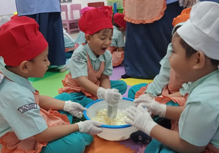 Pengalaman luar biasa diperoleh siswa-siswi TK B, dalam pembelajaran STEAM kali ini. Dimulai dari tanah basah di kebun sekolah hingga cahaya terang dari layar proyektor. Melalui proyek STEAM, para siswa bereksplorasi dengan tanaman singkong. Mulai dari akar hingga daunnya, mencabut singkong hingga mengolahnya, bermain game dan keseruan lainnya.
